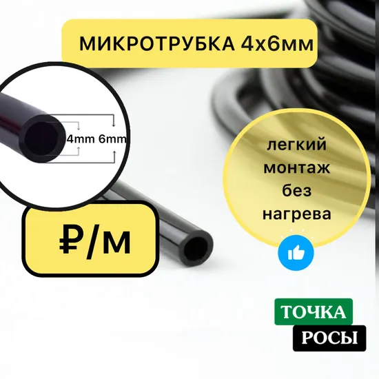 Микротрубка 4х6мм для капельного полива используется для разводки от магистральной трубы и присоединения внешних капельниц полива.