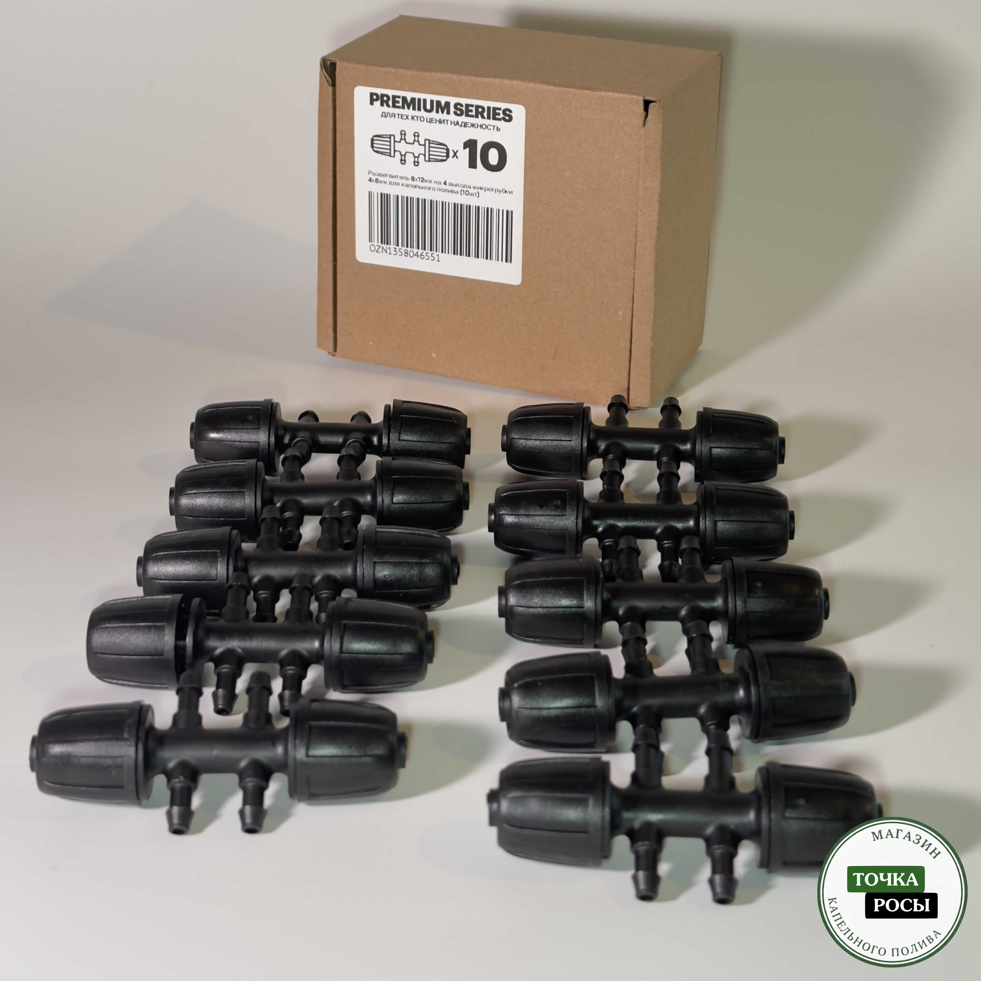 Фитинг с зажимной гайкой выдерживает высокое давление, легкое подключение к магистрали с внутренним диаметром 8мм и толщиной стенки до 1,8мм, имеет 4 выхода для микротрубки 4х6мм (или 4х7мм) для капельного полива.