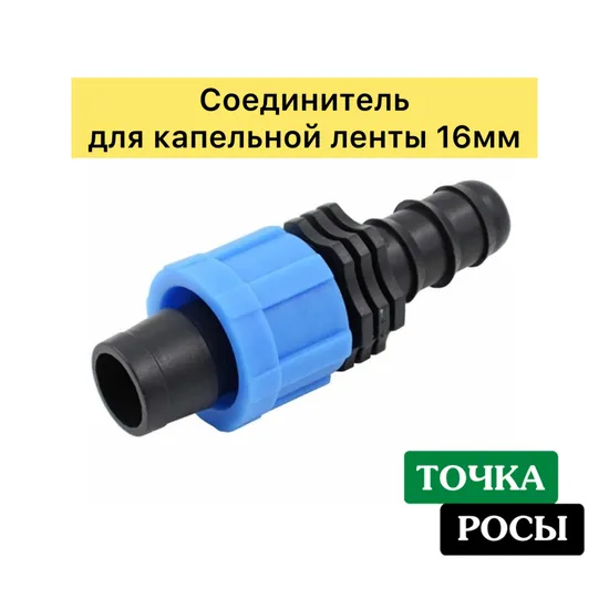Соединитель для капельной ленты диаметром 16мм и садового шланга 1/2’’ или слепой магистральной трубки 16мм. Лента надежно и герметично фиксируется затяжной гайкой на фитинге, а с другой стороны на штуцер можно присоединить садовый шланг или трубку. Удобный и надежный соединитель от Green Helper из Китая - ваш помощник в системе полива!Соединитель для капельной ленты диаметром 16мм и садового шланга 1/2’’ или слепой магистральной трубки 16мм